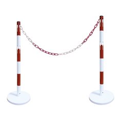 Absperrpfostenset mit Kette, 2 Pfosten, 2,5 m Kette, rot / weiß.
