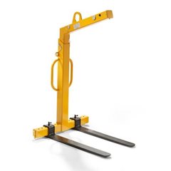 Diese Krangabel ist flexibel auf der Baustelle einsetzbar und durch den automatischen Gewichtsausgleich werden auch schwere Lasten ordnungsgemäß und sicher transportiert. Sie ist schnell und einfach am Kran montiert und kann Euro-Paletten entweder längs oder quer aufnehmen, eine Gabeleinstellung auf den Lastschwerpunkt erfolgt automatisch mittels Laufwagen und Zugfeder. Weitere Merkmale: - Mindestlast 20 - 25 % der Nennlast - Zinken seitlich verstellbar - Stahlkies-entrostet