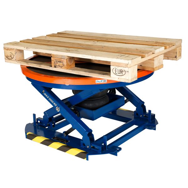 Das Auto-Niveaugerät ermöglicht ein sicheres, schnelleres und einfacheres Be- und Entladen von Paletten. Der PL 2002 kann durch Luftdruck an unterschiedliche Lasten angepasst werden. Einmal auf die Last eingestellt, hält das Palettennivelliergerät die Oberfläche der Last auf derselben, idealen Arbeitshöhe. Dies verhindert ständiges Bücken, Strecken und Verdrehen, welches die häufigsten Ursachen für Rückenprobleme sind. Der PL 2002 bietet Mitarbeitern 360°-Zugang zur Last. Alle Komponenten befinden sich innerhalb des Durchmessers der kugelgelagerten Drehscheibe. Nichts ragt hervor, steht über oder ist im Weg - so gibt es keinerlei Bereiche mit begrenzter Zugänglichkeit. Der Dreh-Hubtisch ist hervorragend geeignet für Anwendungen für Lasten (bis zu 2000 kg) die sich häufig und stark ändern. Kein Stromanschluss nötig. Pumpen Sie das Luftkissen einfach mit Druckluft oder einem tragbaren Kompressor auf und verwenden Sie das Gerät überall! Integrierte Führungsschienen für einfache Umplatzierung mit dem Stapler.