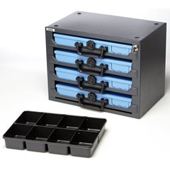 Stapelturm mit 4 Sortimentskoffern, Einleger mit 8fach-Einteilung, Koffer blau. Aus Stahlblech. Gesamtpaket aus Stapelturm, Sortimentskoffer, Einleger und Kofferetiketten. Kugelgelagerte Teleskop-Vollauszüge. Umweltfreundlich pulverbeschichtet. Ergonomische Kunststoffgriffe. Einleger individuell wählbar. Zur Wandmontage geeignet. Stapelturm und Koffer aus hochwertigem, pulverbeschichtetem Stahlblech. Stapelturm in Anthrazitgrau RAL 7016. Mit Sicherheitsschloss inkl. 2 Schlüsseln. Koffer mit Drehverschluss, Schaumstoff-Presspolster im Deckel und Schilderleiste. Einleger aus schwarzem Polystyrol. Lieferumfang Stapelturm. 4 Koffer. 4 Einleger gemäß Skizze. Befestigungsmaterial zur Wandmontage. Stapelturm-Außenmaße Höhe x Breite x Tiefe 319x410,5x259 mm. Sortimentskoffer-Außenmaße Höhe x Breite x Tiefe 52x332x232 mm.