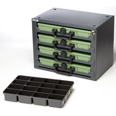 Stapelturm mit 4 Sortimentskoffern, Einleger mit 16fach-Einteilung, Koffer grün. Aus Stahlblech. Gesamtpaket aus Stapelturm, Sortimentskoffer, Einleger und Kofferetiketten. Kugelgelagerte Teleskop-Vollauszüge. Umweltfreundlich pulverbeschichtet. Ergonomische Kunststoffgriffe. Einleger individuell wählbar. Zur Wandmontage geeignet. Stapelturm und Koffer aus hochwertigem, pulverbeschichtetem Stahlblech. Stapelturm in Anthrazitgrau RAL 7016. Mit Sicherheitsschloss inkl. 2 Schlüsseln. Koffer mit Drehverschluss, Schaumstoff-Presspolster im Deckel und Schilderleiste. Einleger aus schwarzem Polystyrol. Lieferumfang Stapelturm. 4 Koffer. 4 Einleger gemäß Skizze. Befestigungsmaterial zur Wandmontage. Stapelturm-Außenmaße Höhe x Breite x Tiefe 319x410,5x259 mm. Sortimentskoffer-Außenmaße Höhe x Breite x Tiefe 52x332x232 mm.