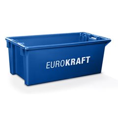 Drehstapelbehälter aus lebensmittelechtem Polypropylen, Inhalt 13 Liter, VE 4 Stk, Wände und Boden geschlossen, blau. 50% Transport- und Lagerraum sparen. Auch mit Deckel stapelbar. Rollenbahngeeignet - glatter Boden. Aus lebensmittelechtem Polypropylen (PP). Temperaturbeständig von -20 °C bis +80 °C. Alle Belastungswerte gelten bei gleichmäßiger Lastverteilung.