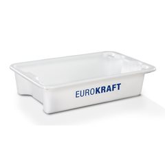 Drehstapelbehälter aus lebensmittelechtem Polypropylen, Inhalt 18 Liter, VE 3 Stk, Wände und Boden geschlossen, natur. 50% Transport- und Lagerraum sparen. Auch mit Deckel stapelbar. Rollenbahngeeignet - glatter Boden. Aus lebensmittelechtem Polypropylen (PP). Temperaturbeständig von -20 °C bis +80 °C. Alle Belastungswerte gelten bei gleichmäßiger Lastverteilung.