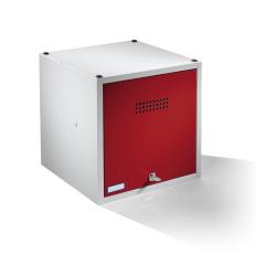 Einzelschließfach Köln, erweiterbar, HxBxT 500 x 500 x 500 mm, mit Sicherheitszylinderschloss, Tür feuerrot.