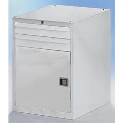 Werkzeugschrank, BxT 600x600 mm, Höhe 800 mm, 2 Schubladen, 1 Tür, lichtgrau. Für leichte bis mittlere Beanspruchung in Handwerk und Industrie. Qualitätsprodukte zum Super-Preis. Zum Arbeitstisch erweiterbar. Pulverbeschichtete Stahlblechkonstruktion. Mit einem höhenverstellbaren Fachboden. Ihr Vorteil Schränke können zur preisgünstigen Werkstatt mit Arbeitsplatte und Werkbankfuß erweitert werden.