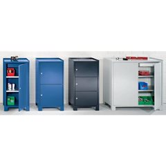 Werkzeugschrank mit Füßen, HxBxT 1000 x 500 x 500 mm, 3 verschließbare Fächer, brillantblau RAL 5007.