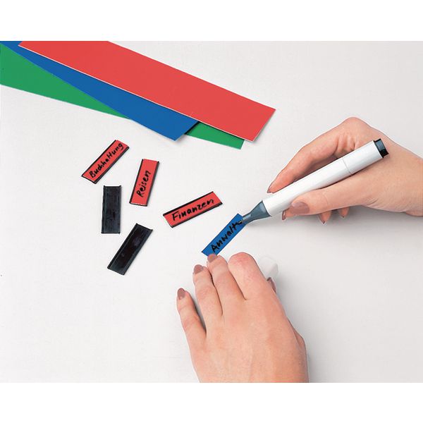 Die perforierten Etiketten zum Auflegen auf U-Profile lassen sich mit Kugel- oder Filzschreiber oder aber mit Beschriftungsgerät beschriften. Verpackungseinheit 345 Stück.