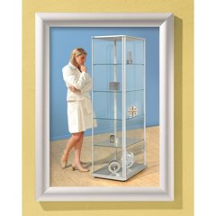 Profilbreite 25 mm, auf Gehrung geschnittene Ecken. UV-beständige Antireflex-Folie schützt vor Ausbleichen durch die Sonne. Sekundenschneller Plakataustausch.