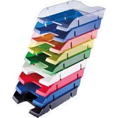 Briefablage, Höhe 70 mm, VE 48 Stk, BxT 275x355 mm, transparent, rauchgrau. 97% aus recyceltem PET, 3% Farbbestandteil. Extrabreite Ablagefläche, z.B. für Ringbücher und Ordner. Kompatibel zu allen Standard-Briefablagen. Ist in 3 verschiedenen Positionen übereinander stapelbar. Ineinander stapelbar (reduziert Transport- und Lagerfläche). Besonders langlebig. Mit bis zu 6 kg Gewicht belastbar. Reduziert 60% CO₂-Emission durch Transport. Für einen verantwortungsvollen Umgang mit unseren Ressourcen: Hergestellt aus recycelten PET-Getränkeflaschen. Die neue, innovative Lösung hilft, die CO₂-Emission durch Transport und Lagerung zu reduzieren. Verpackungseinheit 48 Stück.