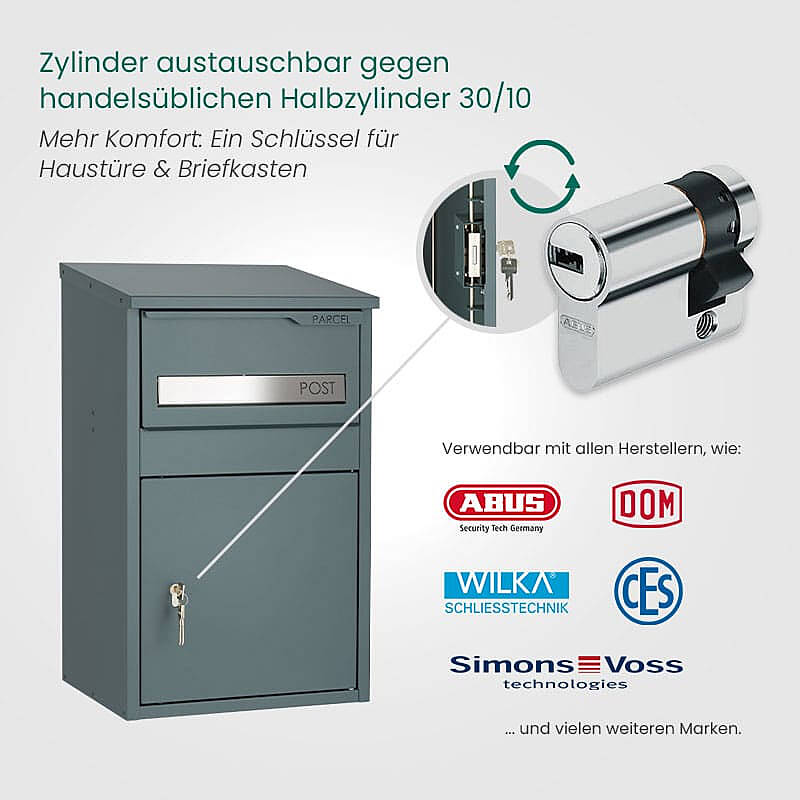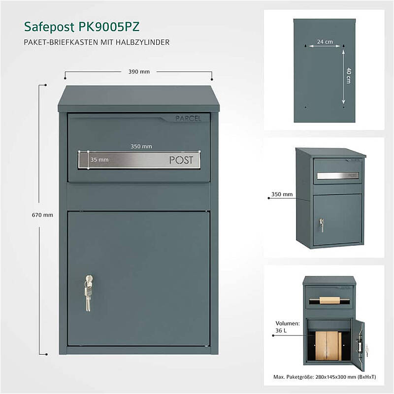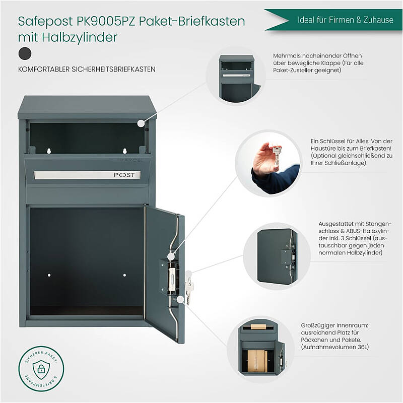 Safepost PK9005PZ - sicherer Paketbriefkasten mit Halbzylinder - komfortable Paketannahme für Zuhause, Geschäft, Büro