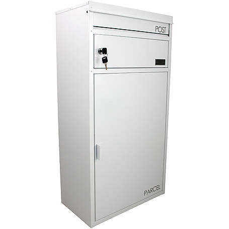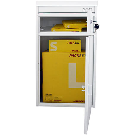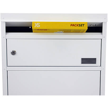 Safe Post 65 Briefkasten mit Paketfach weiß Multifunktionsbriefkasten mit gesichertem Paketfach - flaches Dach