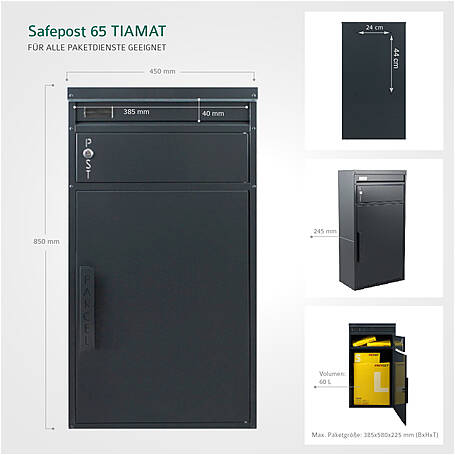 Safepost 65 TIAMAT Paketbriefkasten silber/anthrazit - Briefkasten mit gesichertem Paketfach