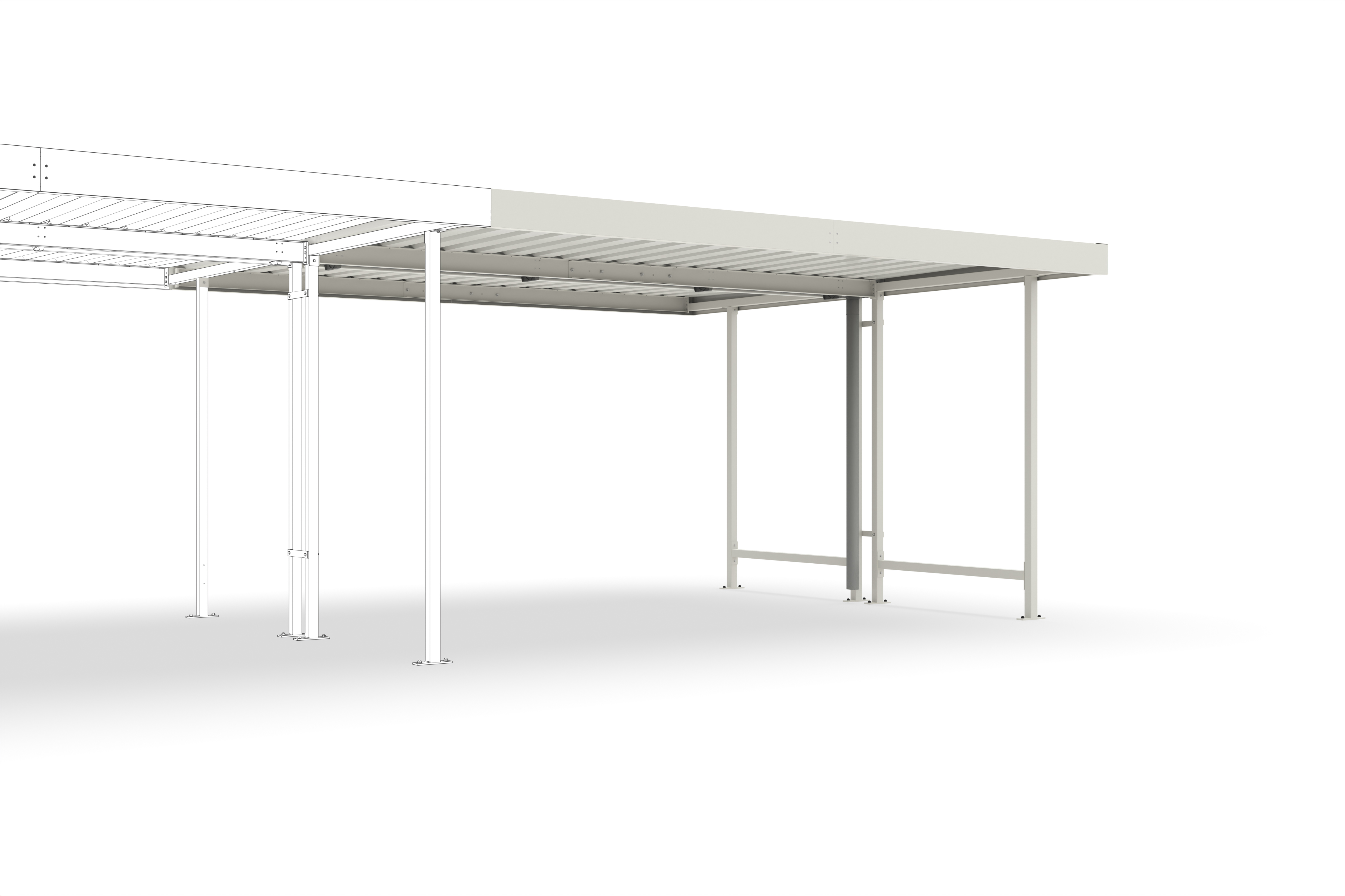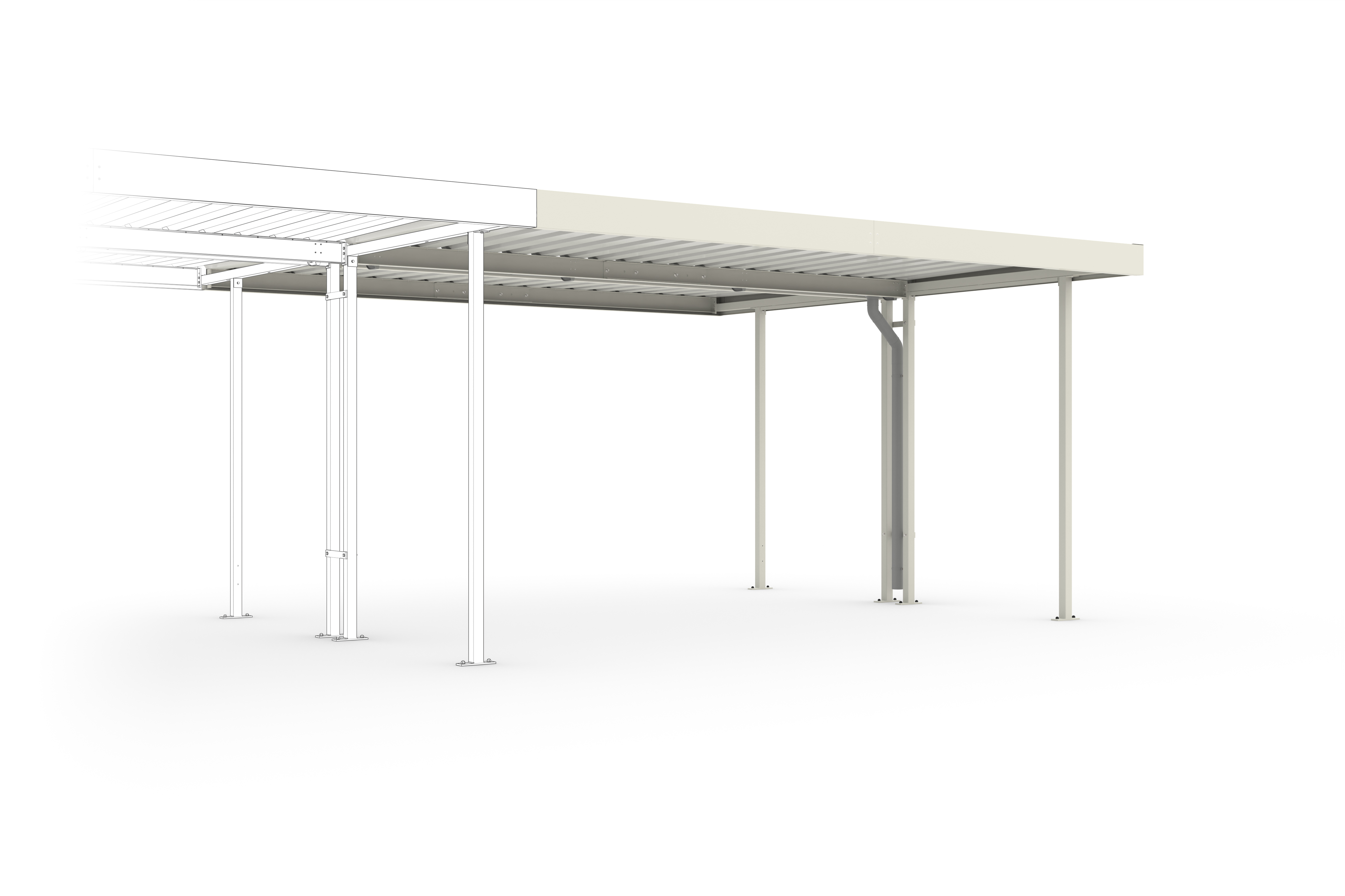Einfach, robust und enorm wandlungsfähig ist das Überdachungssystem „Leipzig“. Durch die Kombination von Grund- und Erweiterungseinheiten sowie durch die Möglichkeit, Seiten- und Rückwände aus Trapezblech einzusetzen, entstehen Überdachungen zur wettersicheren Lagerung von Material oder zum Abstellen von Fahrzeugen, offen, halboffen oder geschlossen. Die praktische Profilblech-Eindachung besitzt eine dreiseitige, geschraubte Blende und leitet Regenwasser nach hinten ab. Regenrinnen und Fallrohre sind auf Wunsch erhältlich. Verfügbar in den Dachtiefen 1.600, 2.200 oder 4.400 mm. Bausatz zur Eigenaufstellung mit leicht verständlicher Montageanleitung.