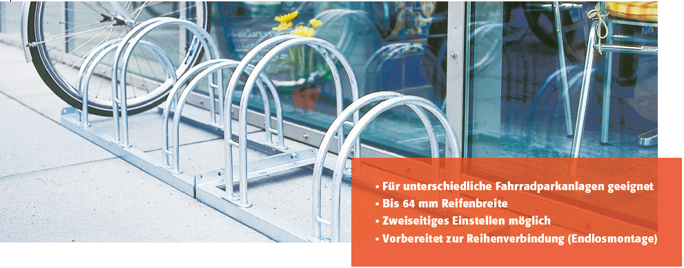 - Für unterschiedliche Fahrradparkanlagen geeignet