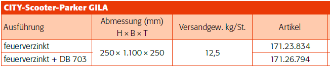 CITY-SCOOTER-PARKER GILA Der CITY-Scooter-Parker GILA zur Wandmontage ist ideal, wenn ein... mehr
