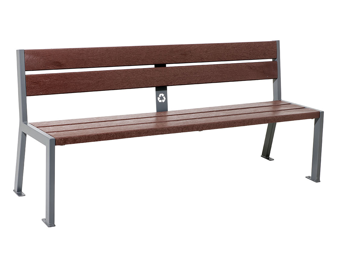 - Recycling-Kunststoff: Leisten 40 mm breit, gestärkt durch Querstreben aus feuerverzinktem Stahl (außer Rückenlehne).