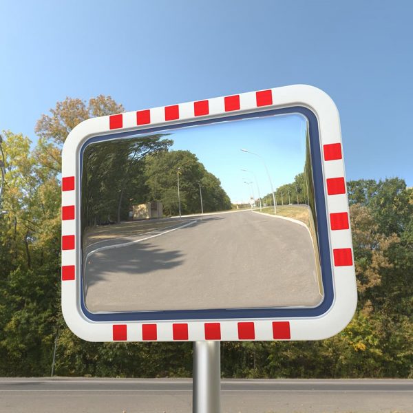 - Edelstahl-Verkehrsspiegel Basic, in Hi-ABS Kunststoff Tasse mit rot-weiß reflektierenden Streifen, inklusive Halterung.