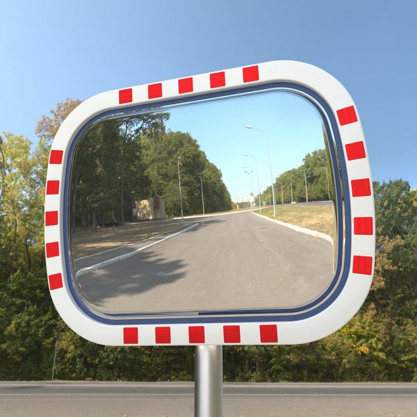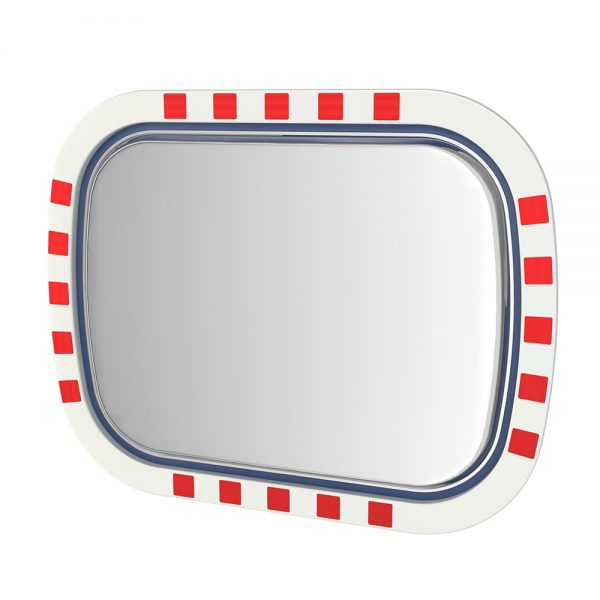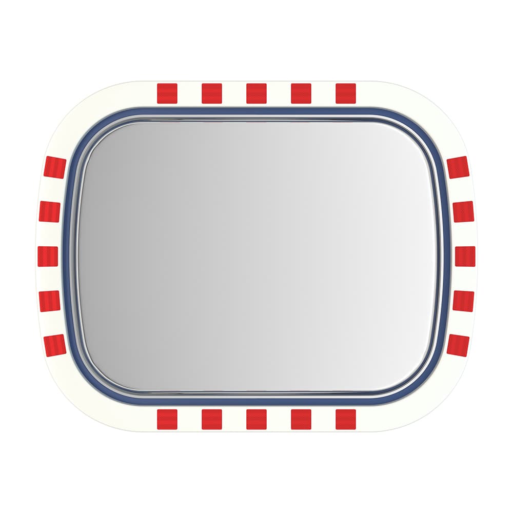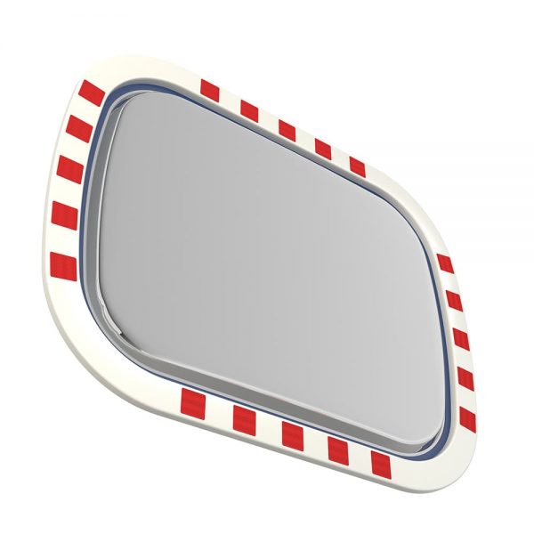 - Edelstahl-Verkehrsspiegel Basic, in Hi-ABS Kunststoff Tasse mit rot-weiß reflektierenden Streifen, inklusive Halterung.