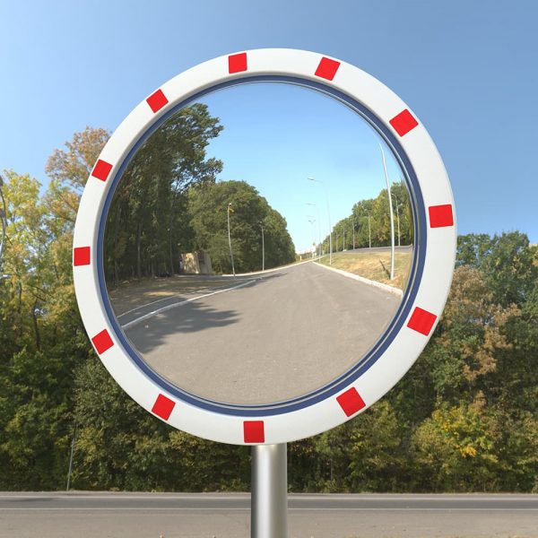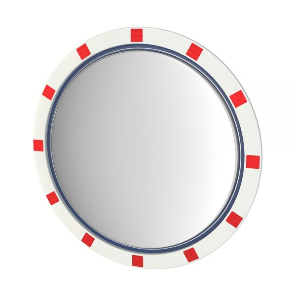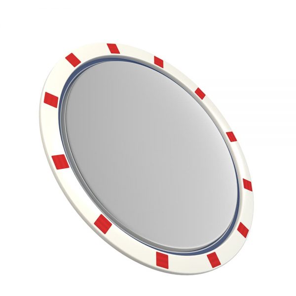 - Edelstahl-Verkehrsspiegel Basic, in Hi-ABS Kunststoff Tasse mit rot-weiß reflektierenden Streifen, inklusive Halterung.